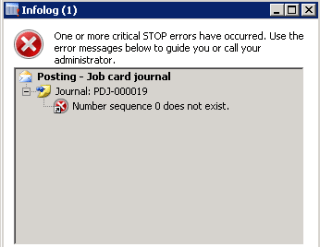 If you receive the error ‘Number sequence 0 does not exist’, check the voucher number sequence associated with the journal type you are trying to post.